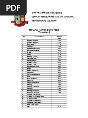 Senarai Harga Buku Teks Form 4 Tahun 2015 Pdf